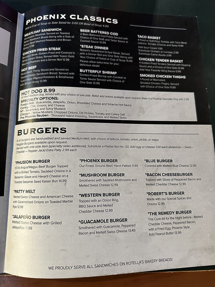 Whether you're enjoying a casual dinner, gearing up for the big game on one of their many TVs, or relaxing on the patio during happy hour, Phoenix Food & Spirits promises a memorable outing filled with delightful cuisine and outstanding service.